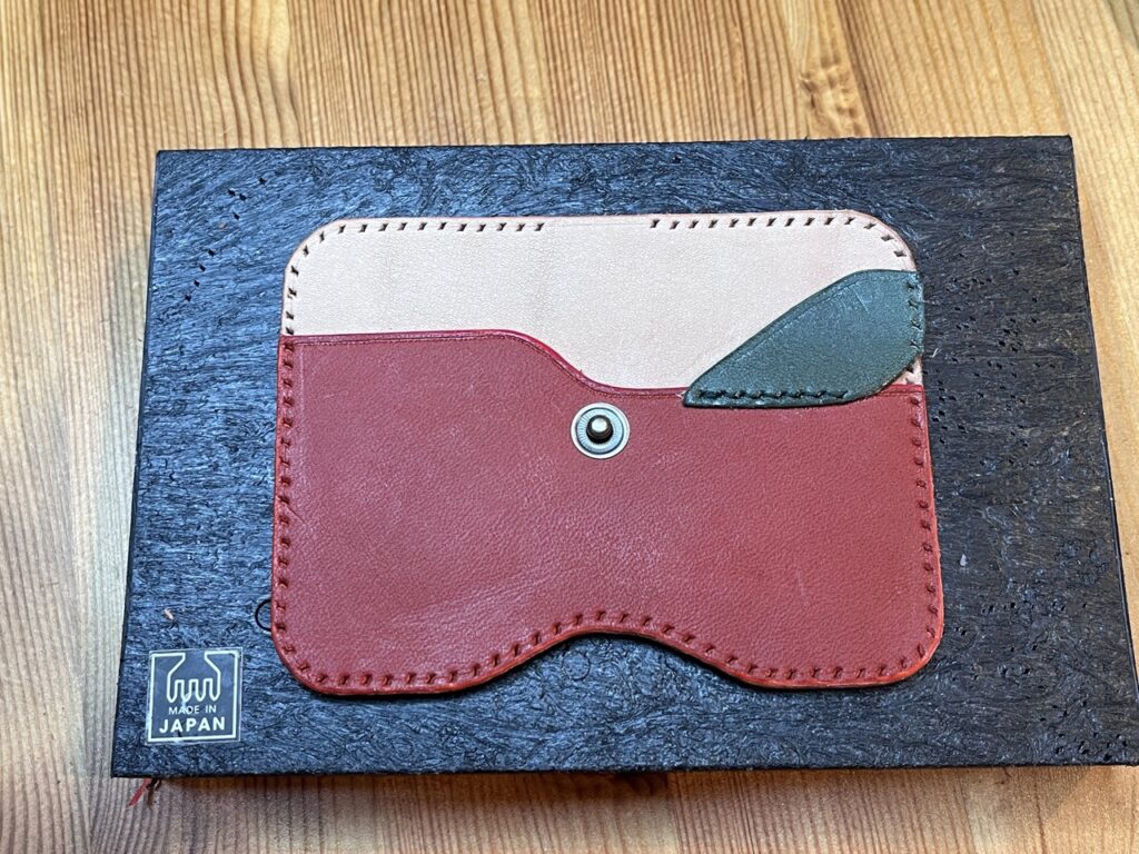 今回はオリジナルでデザインしたりんご型のパスケースを作製してみました。初めて金具を取り付けてみましたが、金具を取り付けると急に製品感が出てきて楽しかったです。型紙の寸法は冒頭の写真に載っているので気に入ってもらえる方がもしいれば、ご自由に真似して作ってみてください。