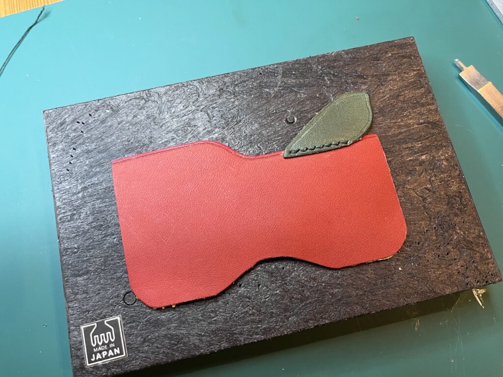 りんごをモチーフにしたパスケースの作製 レザークラフト