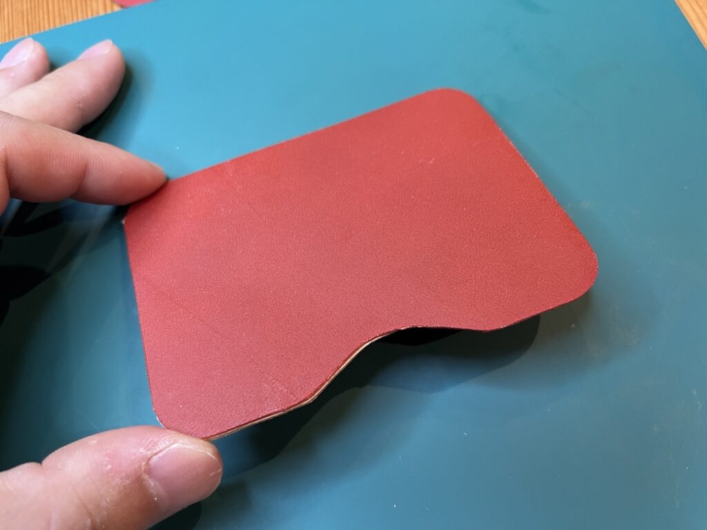 こんな感じで綺麗に仕上がりました。(写真のものはコバを赤い染色液で色付けしています)