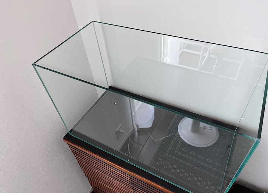 前回、自作の水槽台ができたので、今回は水槽の設置からレイアウト作成までをやっていきたいと思います。設置前の風景です。ここに60センチ水槽を設置していきます。