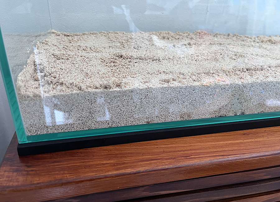 次に水槽に底砂を入れていきます。今回使用したのはアラガライブ バハマオーライト4.5kgとJUN 極上サンゴ5 kgです。