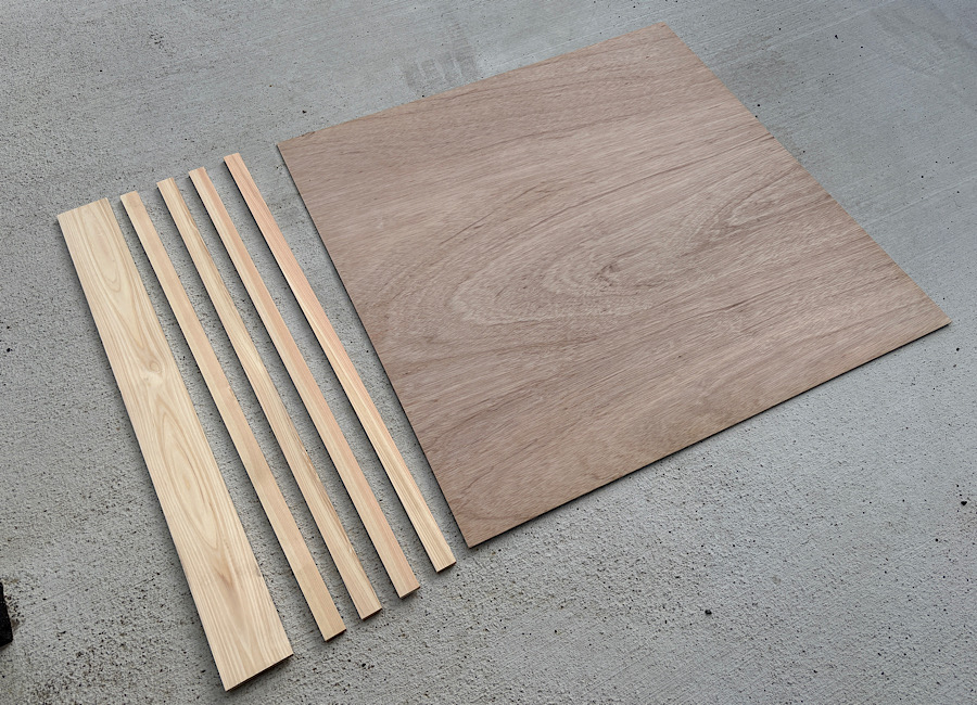 使用するのは1m×1mの板材と、1m×10cmぐらいの板、あと1m×4cmぐらいの板が4本です。材料代はだいたい2000円くらいでした。