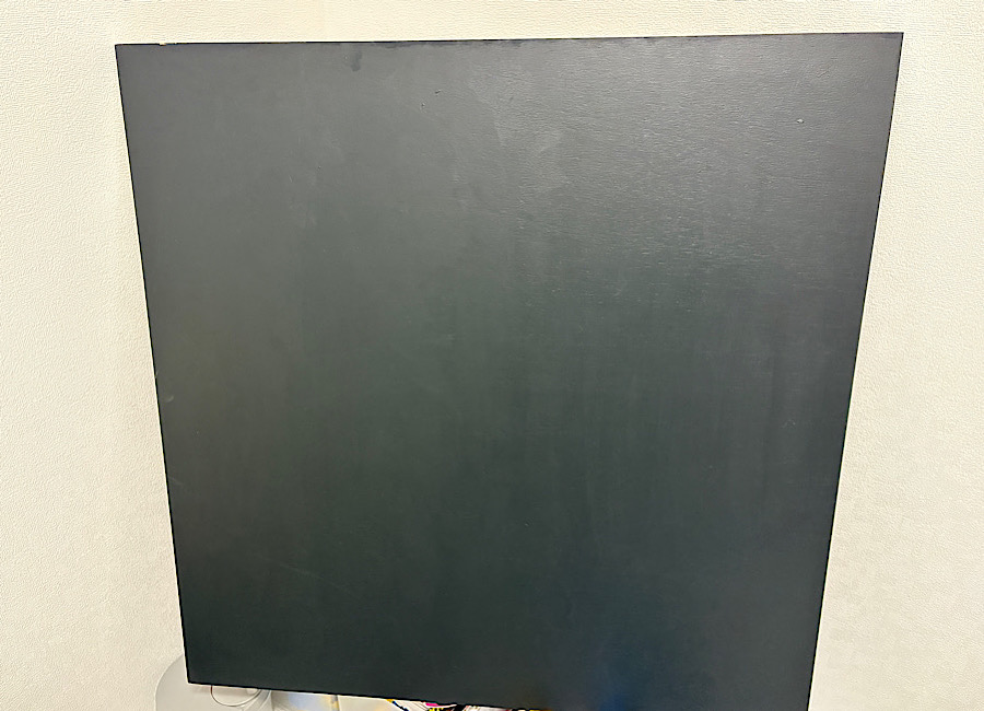 - また黒板の固定ですが壁に打ち込むと壁に穴が空いてしまうので、床に直置きして、壁に立てかけるだけの方式にしました。