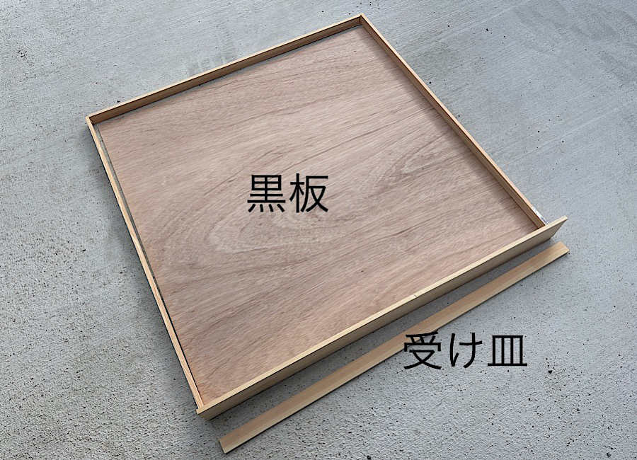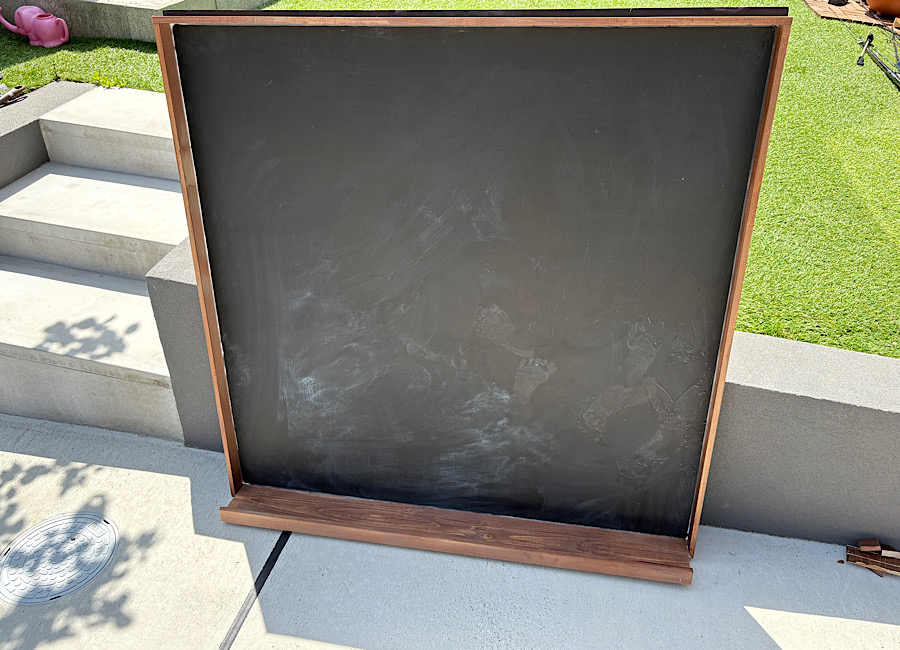 - うちは子供2人なので、2人でも広く使える黒板にしようと思い、サイズはおよそ1m×1mにしました。